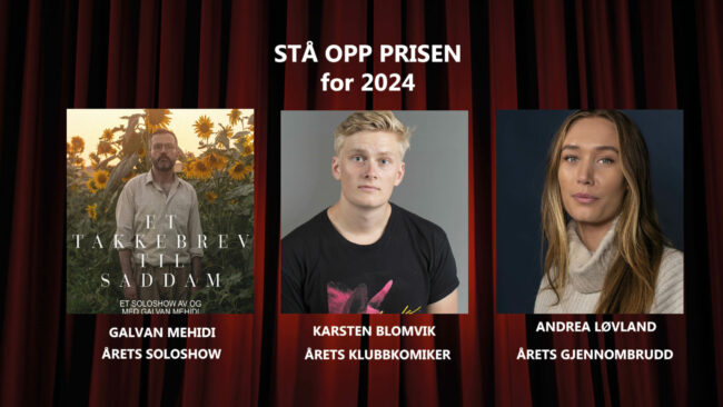 STÅ OPP-PRISEN for 2024 STÅ OPP-PRISEN er stand up-sjangerens egen bransjepris og Reis Deg Komikerklubb har delt ut prisen siden 1996. Dette er en prestisjefylt pris da det er medlemmene av klubben og en jury som består av blant andre leder av klubben og fjorårets vinner som stemmer frem vinneren. Det er en viktig pris…